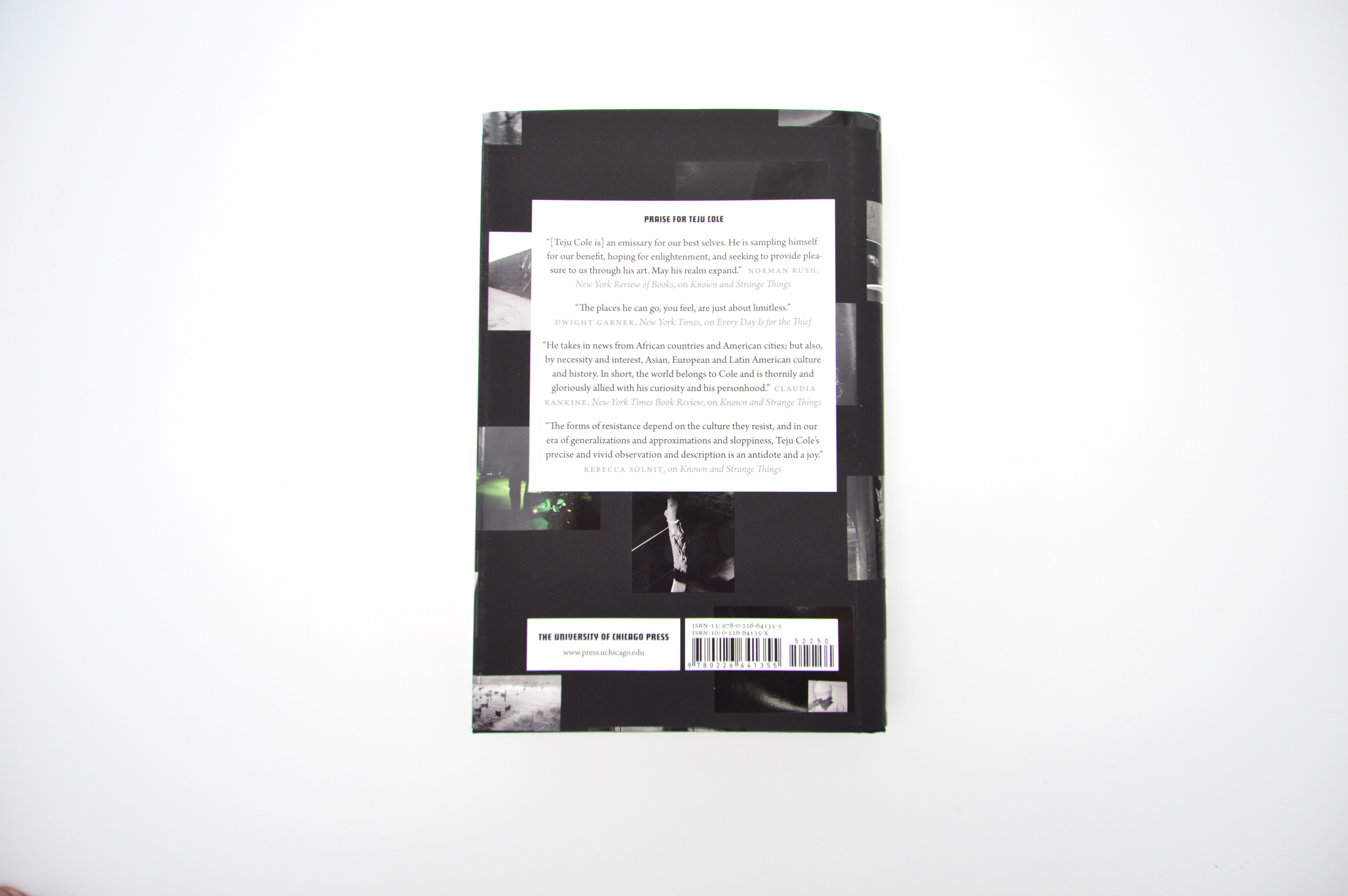 Wide-ranging but thematically unified, the essays address ethical questions about what it means to be human and what it means to bear witness, recognizing how our individual present is informed by a collective past. Cole’s writings in Black Paper approach the fractured moment of our history through a constellation of interrelated concerns: confrontation with unsettling art, elegies both public and private, the defense of writing in a time of political upheaval, the role of the color black in the visual arts, the use of shadow in photography, and the links between literature and activism. Throughout, Cole gives us intriguing new ways of thinking about blackness and its numerous connotations. As he describes the carbon-copy process in his epilogue: “Writing on the top white sheet would transfer the carbon from the black paper onto the bottom white sheet. Black transported the meaning.”