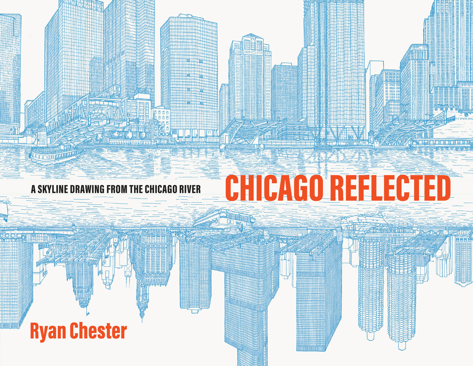 In March 2020, architect Ryan Chester began drawing the Chicago River for at least one hour every day. Using only a pen, he moved methodically along a single massive roll of paper. As each chaotic, isolating day of the COVID-19 pandemic passed, he stayed connected with his adopted city by carefully documenting by hand the beautiful intricacies of Chicago’s riverfront architecture, boats, and bridges.