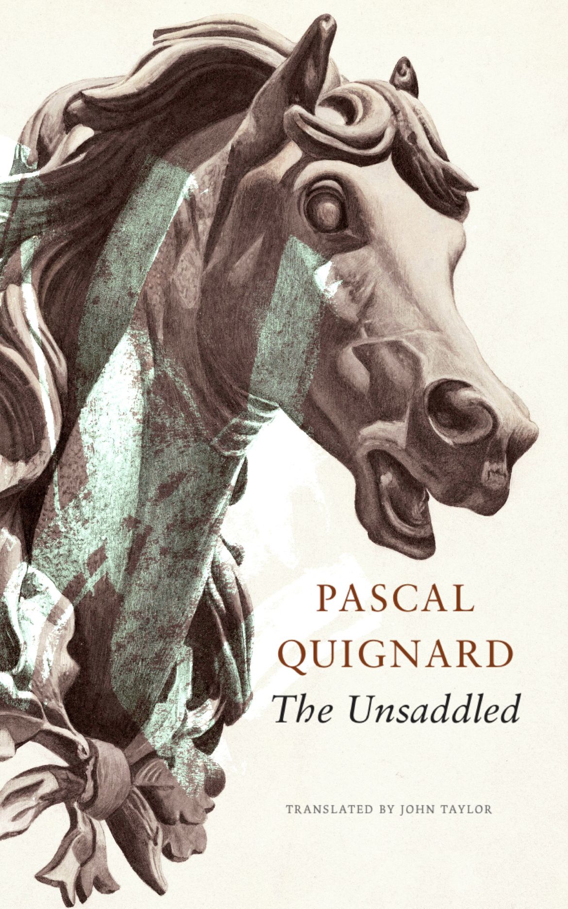 In Pascal Quignard’s writing, philology hunts for wild game in a dark forest. The Unsaddled, which features horses as its central figure, is no exception. Taking off from puns, multifarious imagery, and metaphorical meanings—“to be baffled,” “to be thrown”—that the book’s title provides, Quignard focuses on life-changing moments. We meet George Sand (whose father died after being thrown from his horse), Saint Paul, Abelard, Agrippa d’Aubigné, and countless other writers, philosophers, theologians, or kings who fell off their horses—not to forget Jean-Jacques Rousseau, who was knocked over by a dog. Being “unsaddled” can also be associated, as Quignard shows in regard to Nietzsche, with an “overturning” of values. Scenes of war, hunting, “fleeing” or sexuality—“When lovers have a horse ride, they gallop in another world”—come before our eyes, each time from those unsettling vantage points that Quignard knows how to find. As ever, he ranges far and wide in his intense quest, taking examples from across human history, from the neolithic age to his own childhood memories of postwar Le Havre in northern France.
